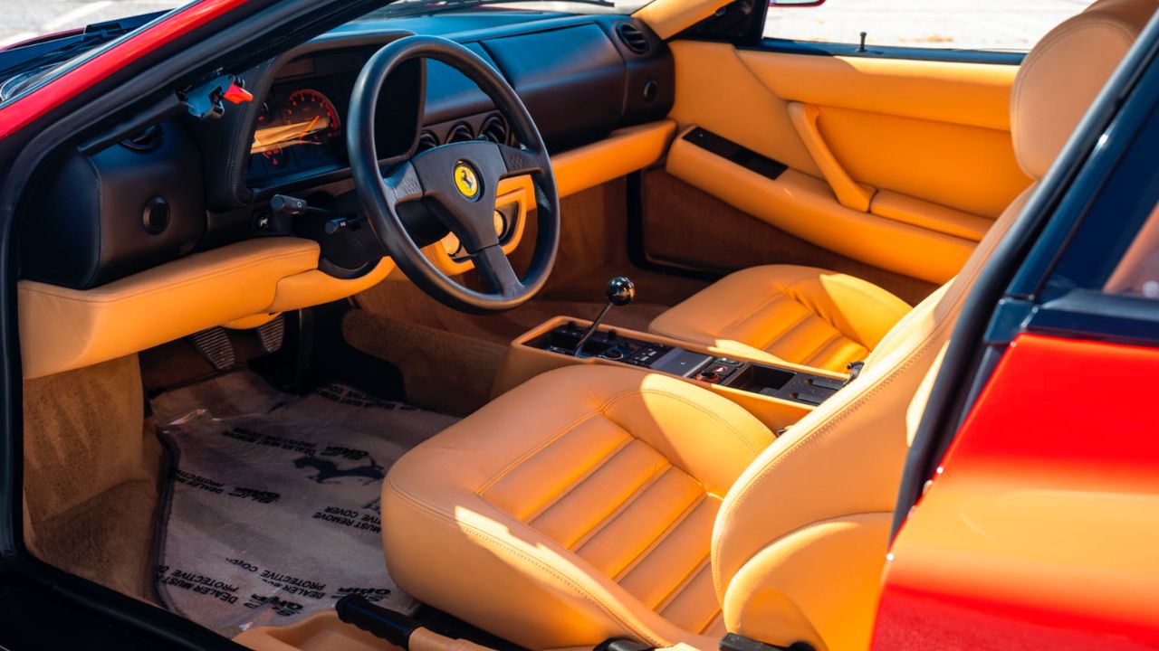 The interior was more refined than the Testarossa’s, but it still wasn’t what you’d call plush. Ferrari reworked the seats for better bolstering and updated the dash with a cleaner, more modern layout. Leather wrapped most of the surfaces, and switchgear was a little less scattered.