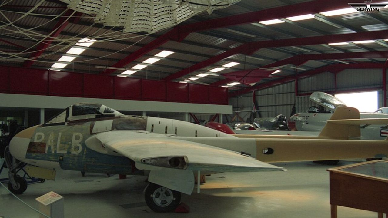 The Vampire F.1 was the first jet fighter commissioned by the Royal Air Force (RAF) after World War II. It featured a distinctive twin-boom tail design, which set it apart from other aircraft of its time. The F.1 was powered by a single de Havilland Goblin engine, which allowed it to reach speeds of up to 548 mph. Its development marked a significant leap in aviation technology, transitioning from piston engines to the new jet-age era.