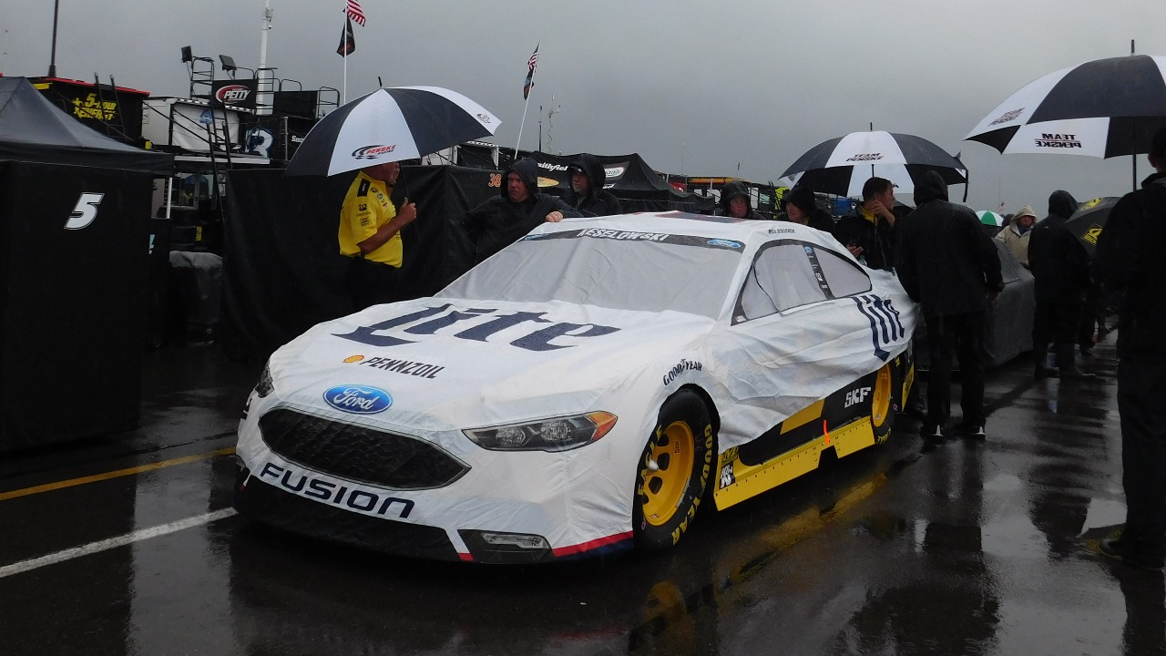 Stock car racing took a very different path. For decades, NASCAR treated rain as a hard stop, especially on high-speed ovals where heavy cars on slick tires were already operating near the edge of adhesion. If precipitation arrived mid-race, officials would throw a caution, then a red flag, and wait until the track was dry enough to resume, even if that meant pushing the finish to the following day. That conservative stance reflected both safety concerns and the reality that traditional NASCAR machinery lacked basic wet-weather tools like rain tires and wipers.