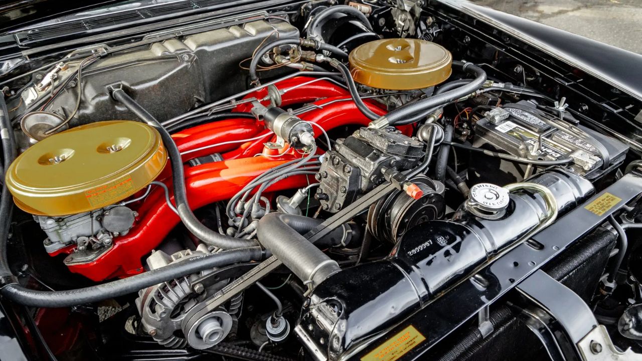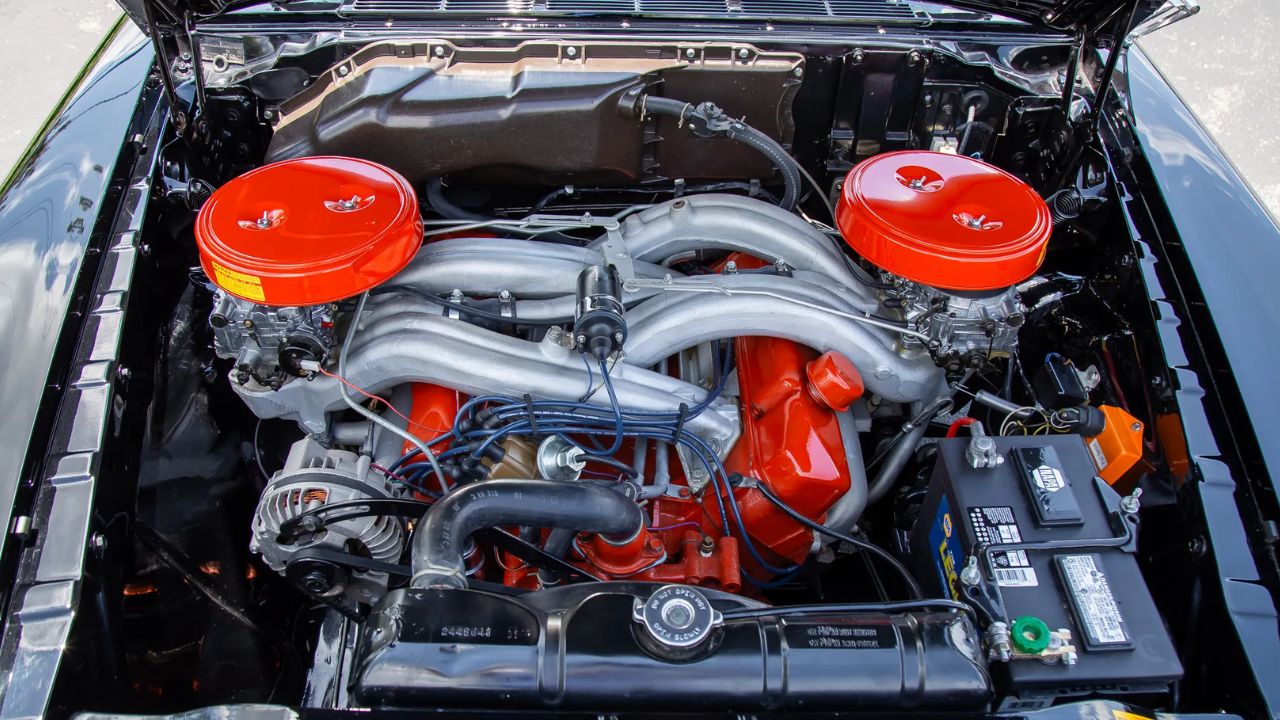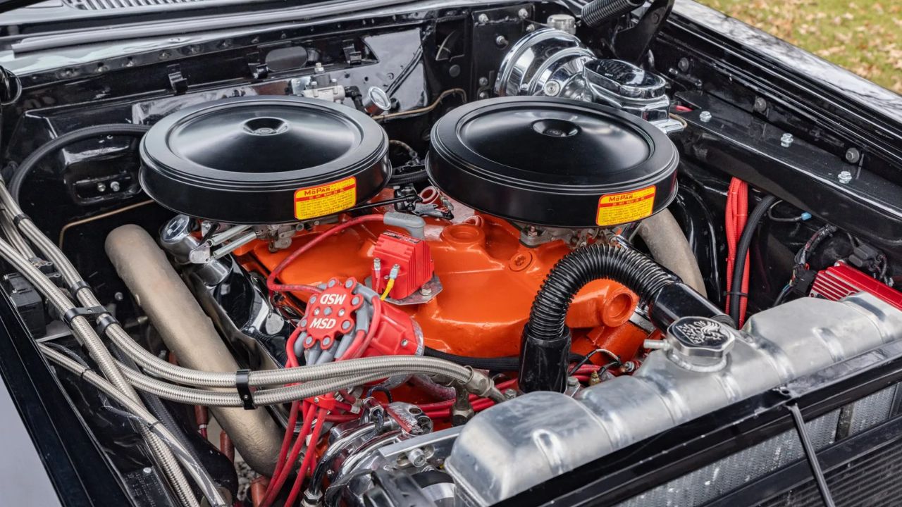 The 300F was the first Chrysler to run the long-ram dual four-barrel setup, and it wasn’t just for show. The 413 wedge under the hood used a unique “ram-tuned” intake that stretched the carburetors to opposite sides of the engine bay. At 3,800 rpm, it made serious torque—495 lb-ft, to be exact.