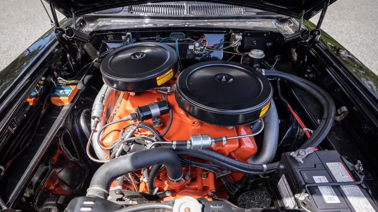 It was paired with a push-button TorqueFlite automatic, and the car could run 0–60 in around 7 seconds, which was impressive for a full-size coupe. Inside, it had swivel bucket seats and a full-length center console. It was fast, but also oddly refined for a car making nearly 380 hp.