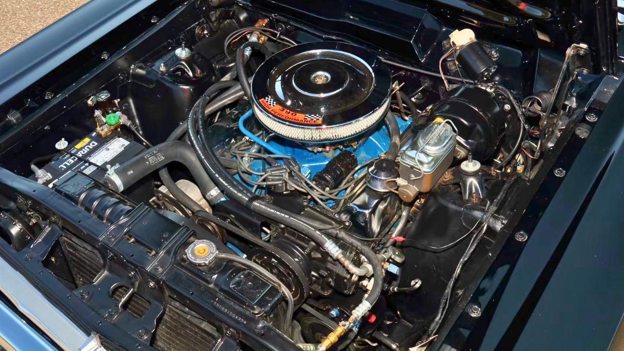 Under the hood of the 1966 Fairlane GTA was a 390 cubic-inch V8 rated at 335 horsepower and 427 lb-ft of torque. It was paired with a C6 three-speed automatic transmission, which delivered strong acceleration for the time. This setup helped the Fairlane compete against big-block rivals in the muscle car space.