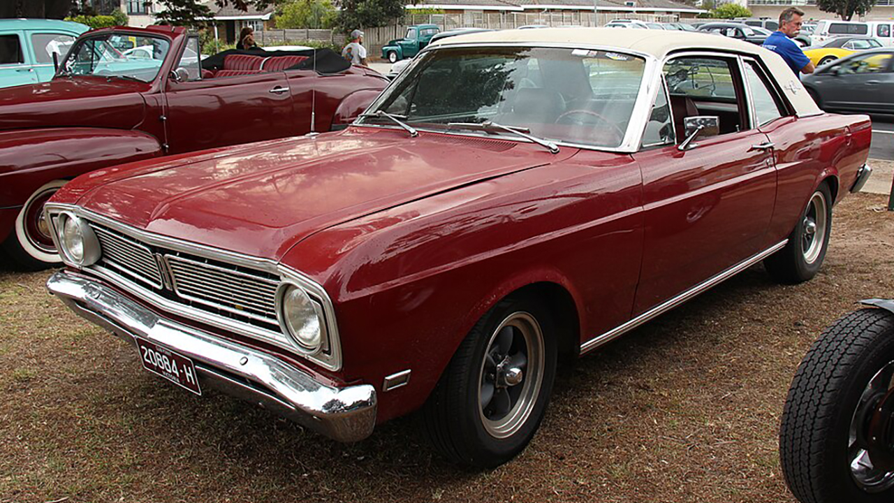 The 1969 Falcon with a 428 Cobra Jet V8 made 335 hp, hitting 0–60 in ~6.5 seconds and 130 mph. Its 117-inch wheelbase and 3,300-pound body looked ordinary. The interior had basic vinyl and a floor shifter. Its boxy design screamed economy car, but the V8 made it a drag-strip terror.