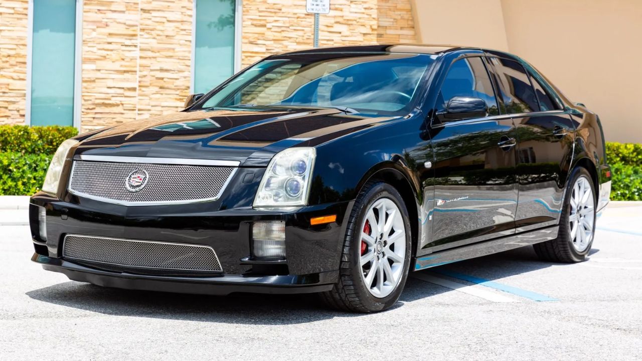 Cadillac aimed at the Germans with the STS-V, dropping a supercharged 4.4-liter Northstar V8 under the hood. Output was rated at 469 horsepower and 439 lb-ft of torque, sent through a beefed-up automatic transmission. The car was built to be a full-size luxury missile, hitting 60 in about 4.6 seconds. It cost nearly $80,000 new, which limited its appeal, but it proved Cadillac still knew how to make a serious V8 sedan.