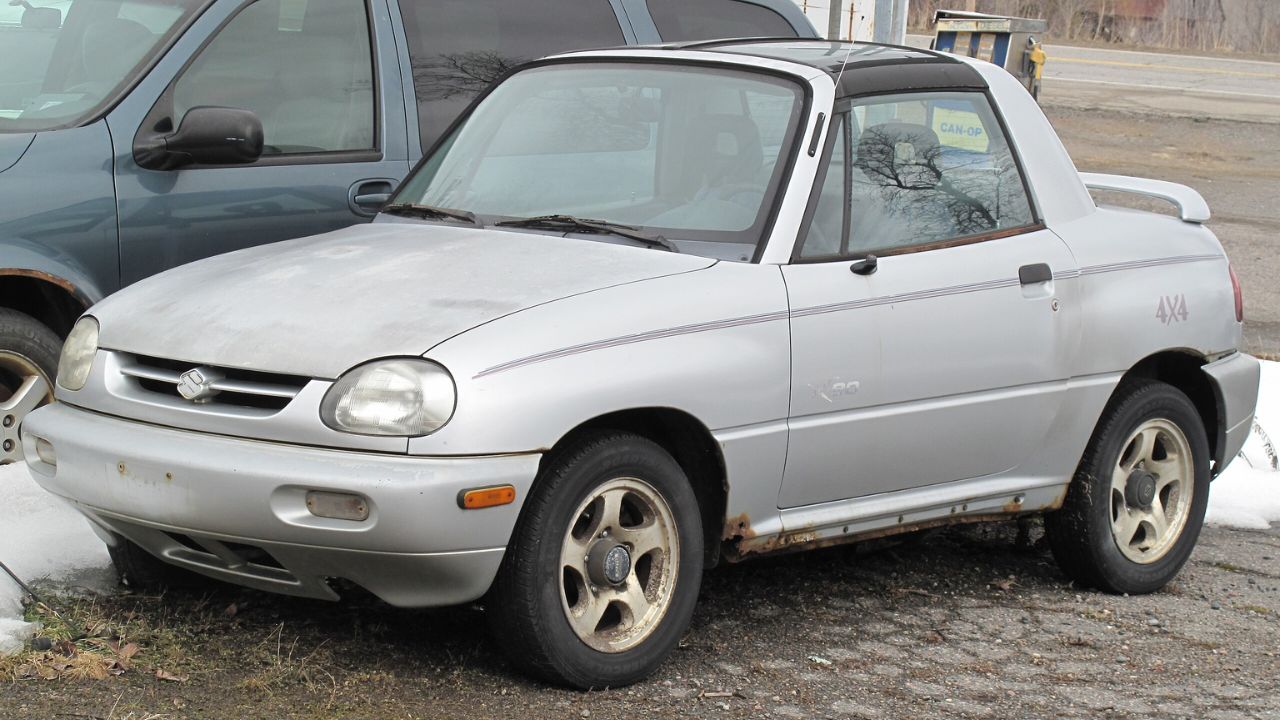 The Suzuki X-90 was a two-door SUV with a removable T-top and the proportions of a wind-up toy. Powered by a 95 hp 1.6L engine, it somehow weighed 2,400 lbs and had the handling dynamics of a shopping cart with a broken wheel.
